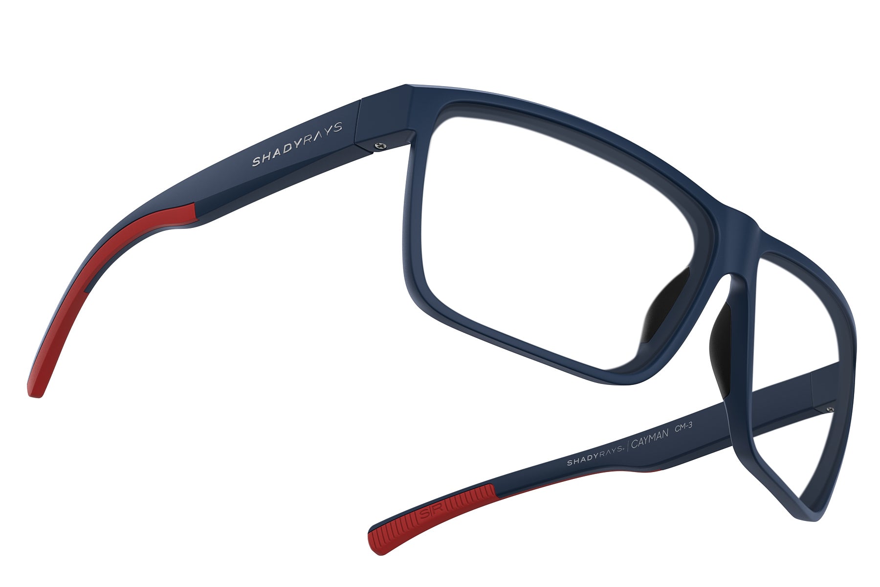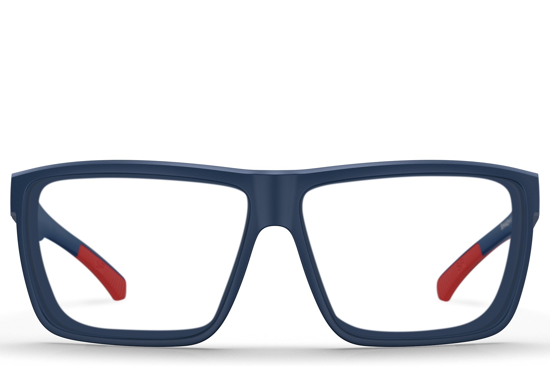 Same Cayman shape. but in an adjusted sizing. Matte Navy TR-90 frame with raised silver logos. complete with prescription lenses custom-made for you in our US-based optical lab. Includes signature hard case.