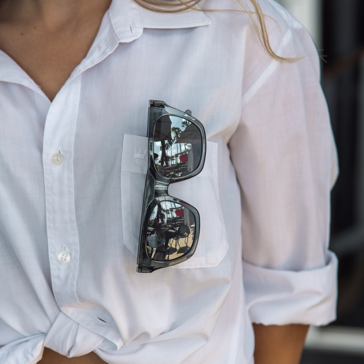 - Polarized silver flash mirrored lens with grey tint. shatterproof. anti-scratch lenses. salt water resistant. and hydrophobic coating