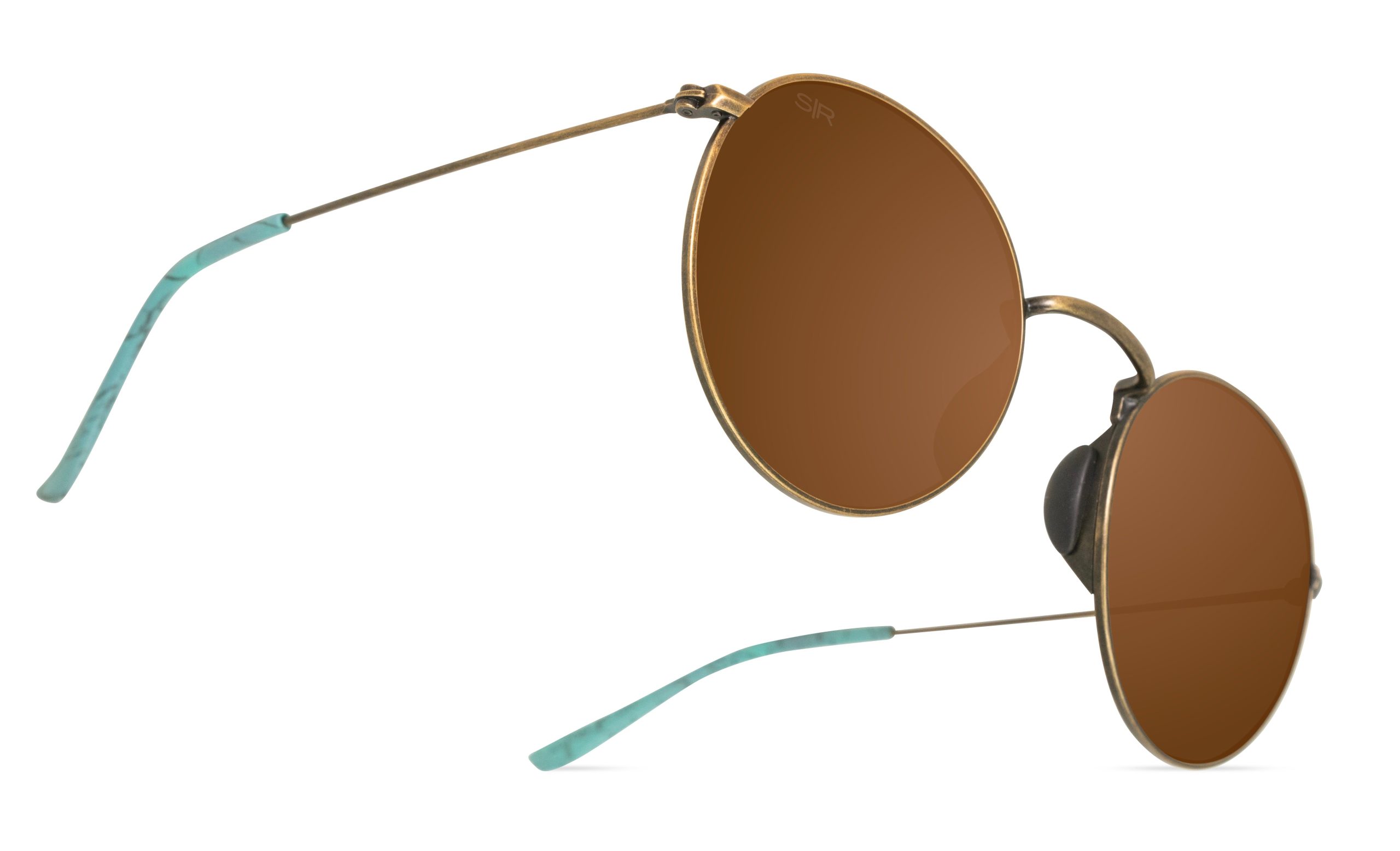 - Antique Gold Metal frame with vibrant turquoise temple tips