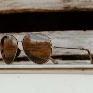- Antique Gold Metal frame with flex fit arms and snakeskin patterned temple tips