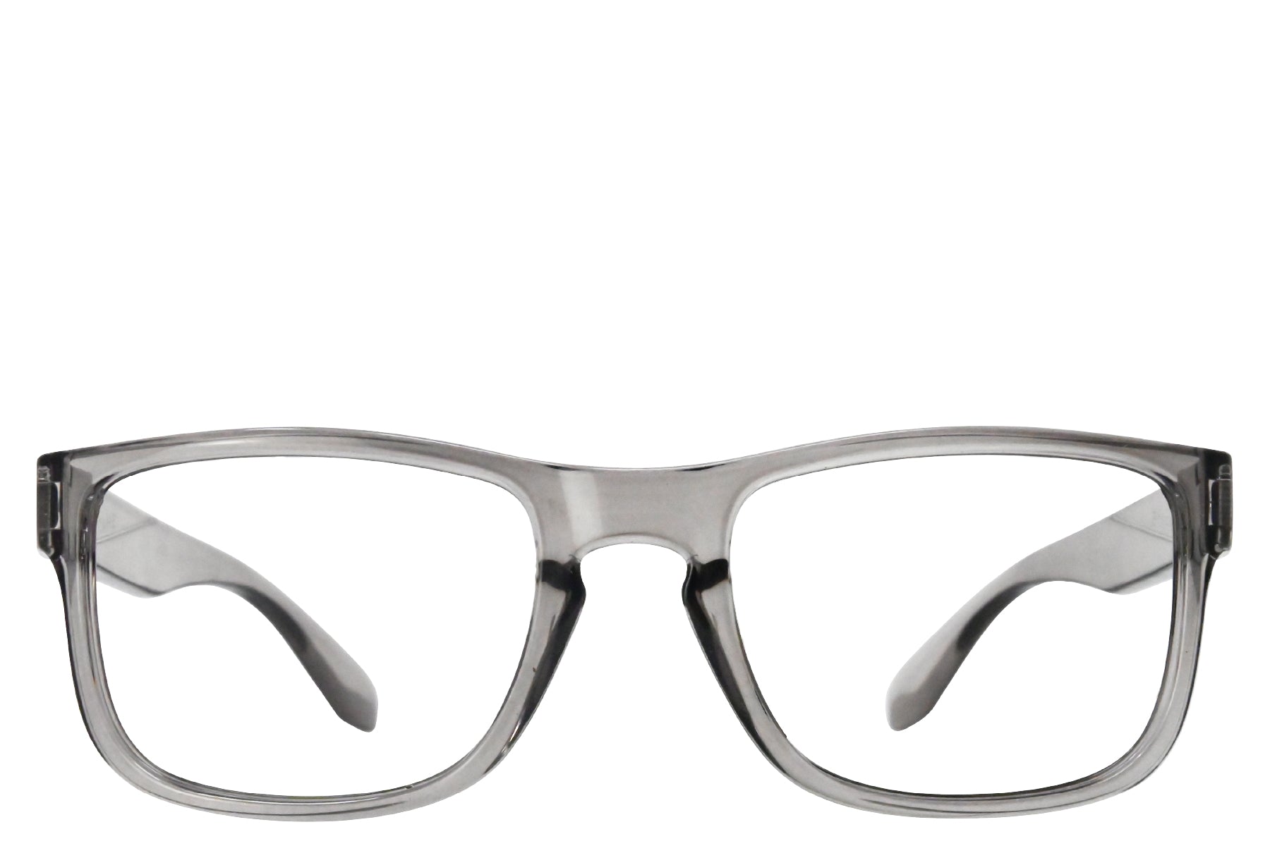 Transparent gloss smoke grey TR-90 frame. complete with prescription lenses custom-made for you in our US-based optical lab. Includes signature hard case.