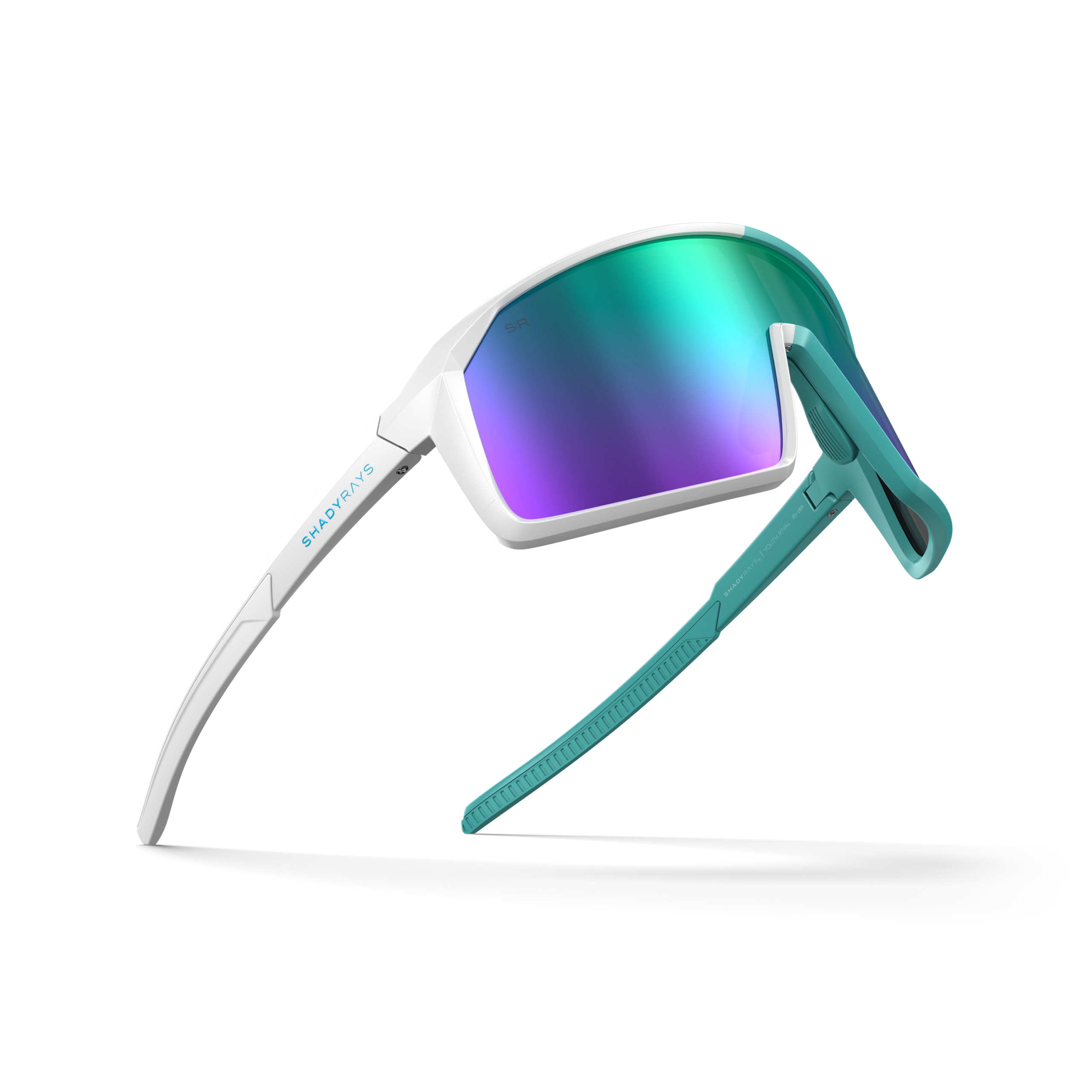 - Gloss split Teal and White TR90 frame designed for a flexible lightweight fit and extreme durability.